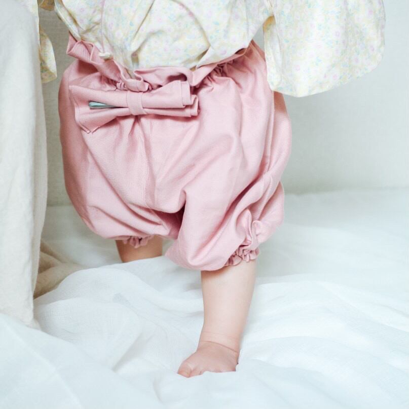 パンツはカボチャパンツタイプになっておりますが裾のゴムを抜いていただければストレートパンツでの着用もしていただけます。