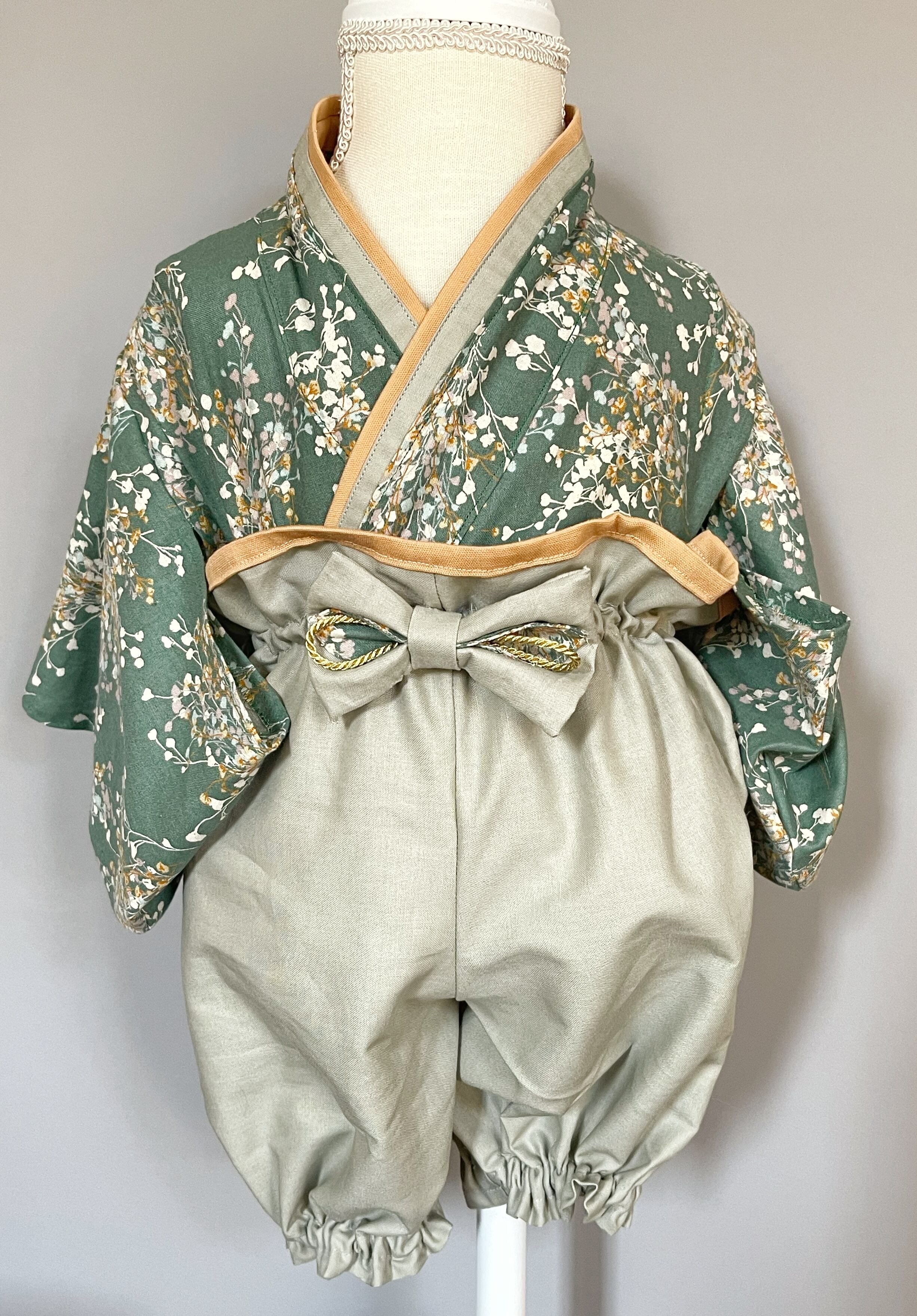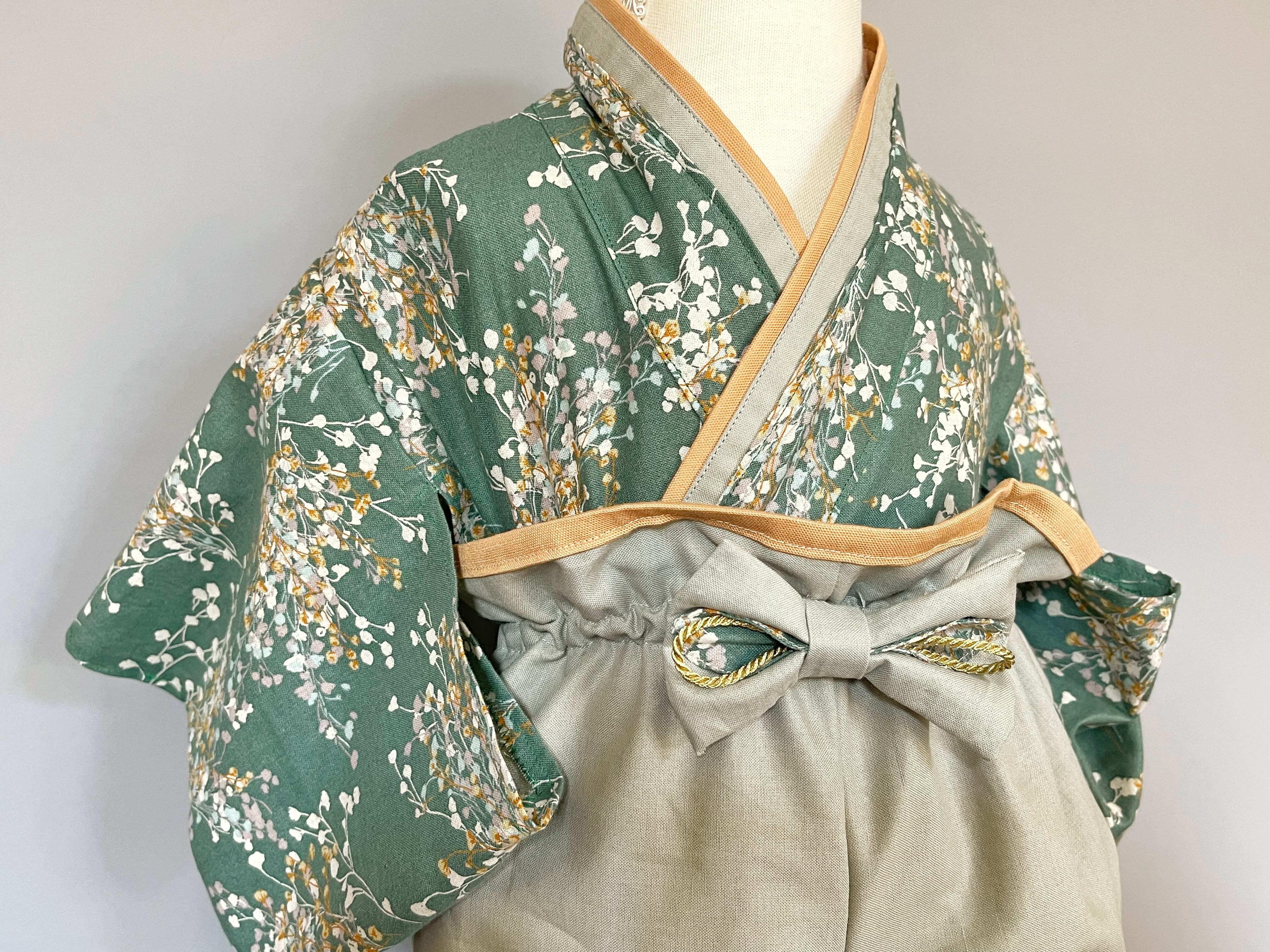 《受注生産》ベビー袴 グリーンリーフ (70〜80センチ)